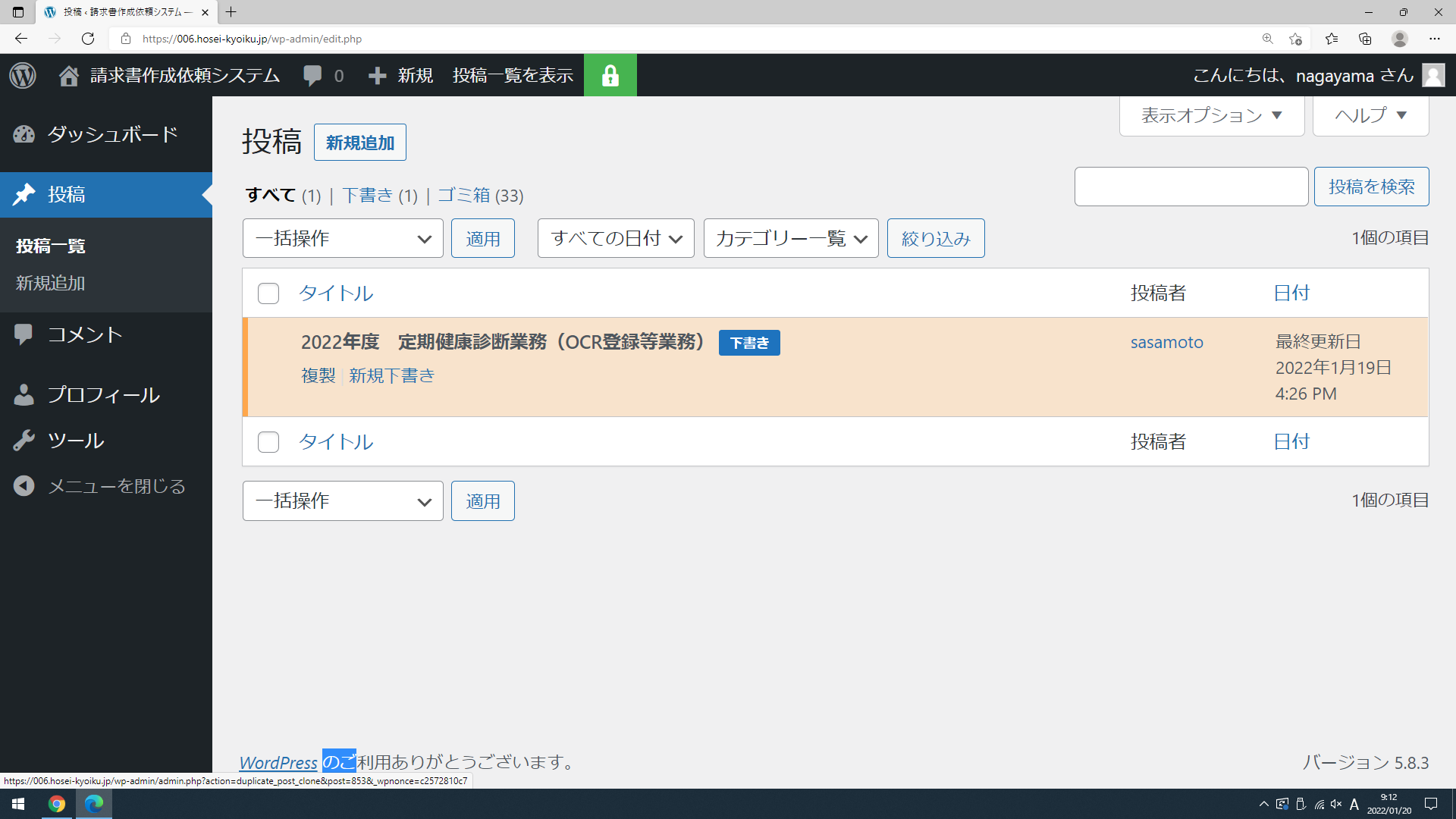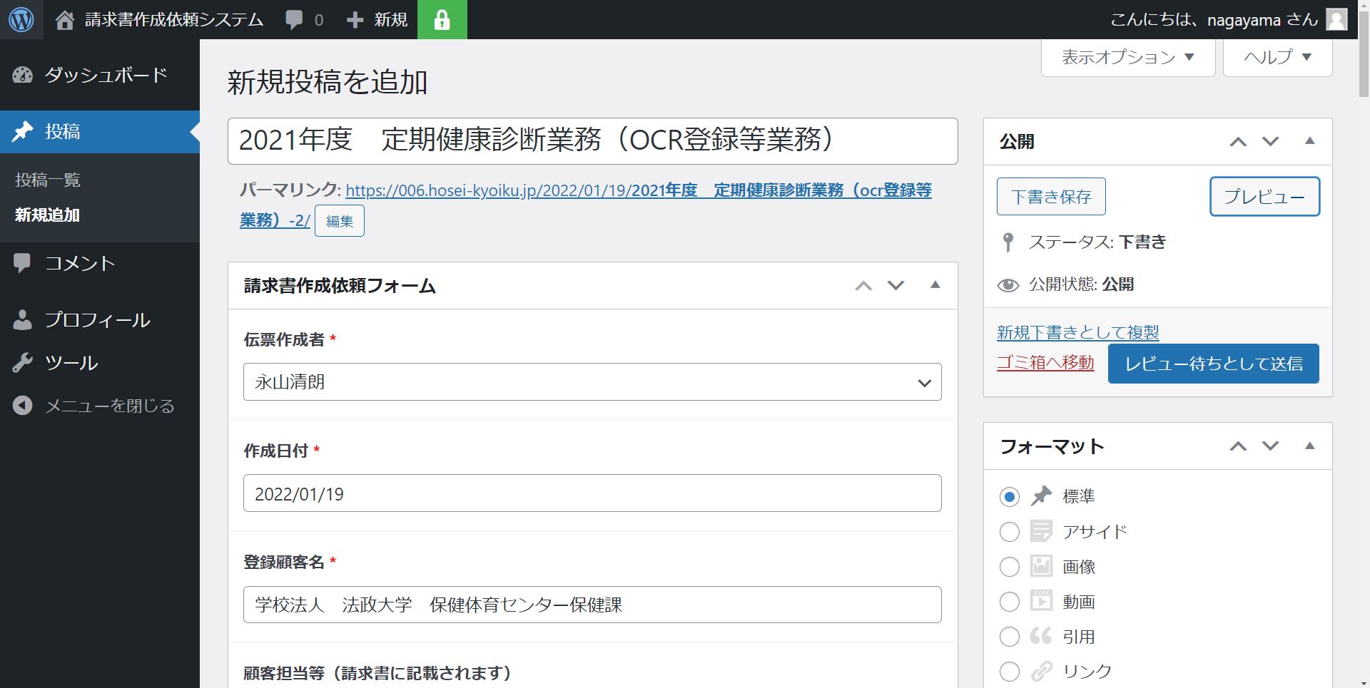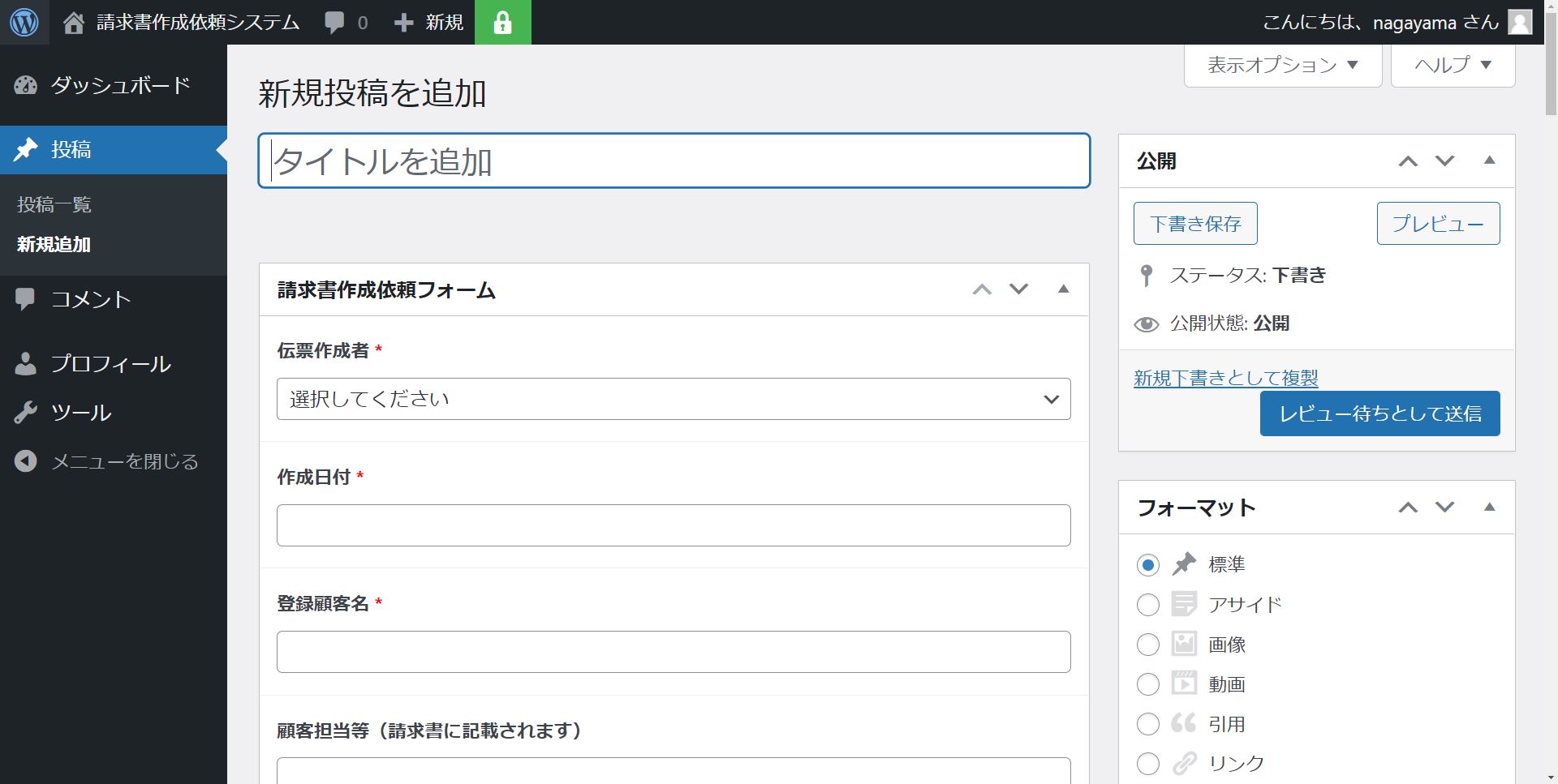 投稿一覧に戻ると、作成したタイトルが「レビュー待ち」となっています。