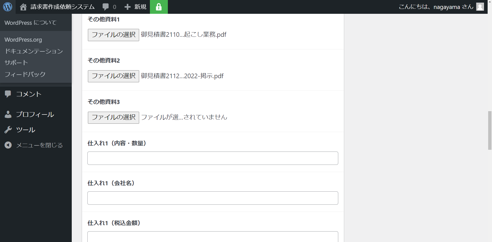 「その他資料1」になにか添付すると、「その他資料2」の欄が表示されます。