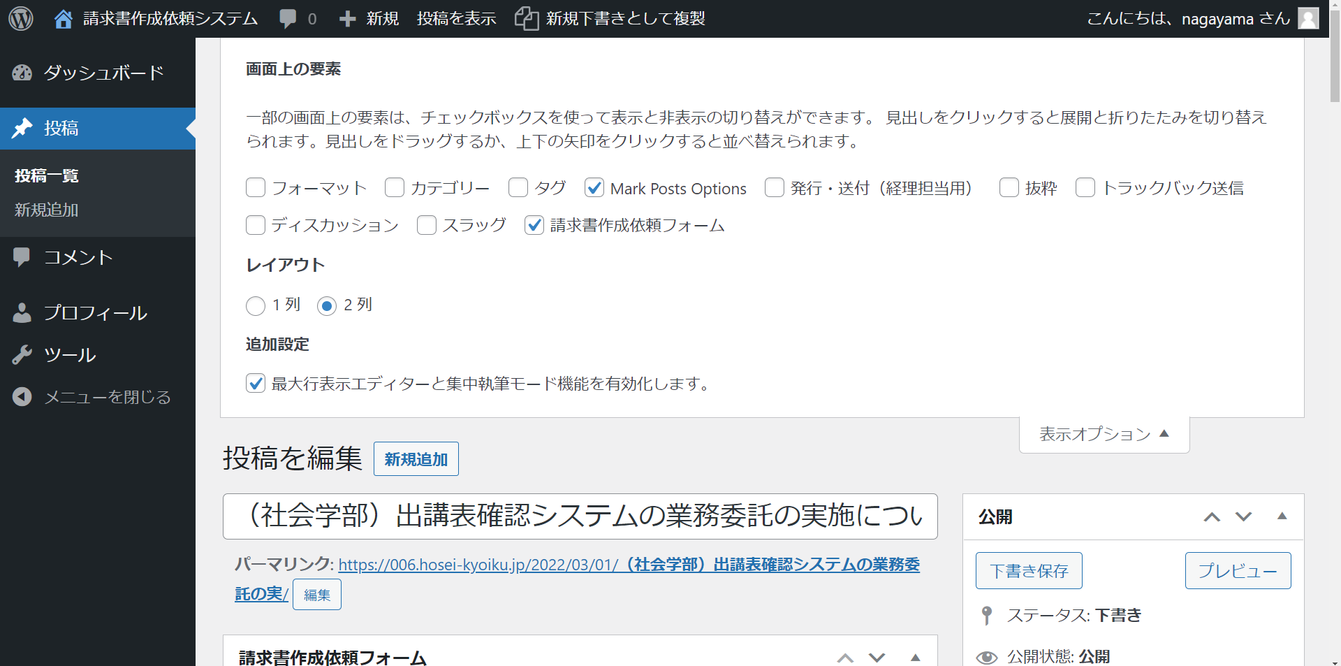 ※「Mark Posts Options」が表示されていない場合、右上の「表示オプション」を開き、「Mark Posts Options」のチェックボックスにチェックを入れてください。